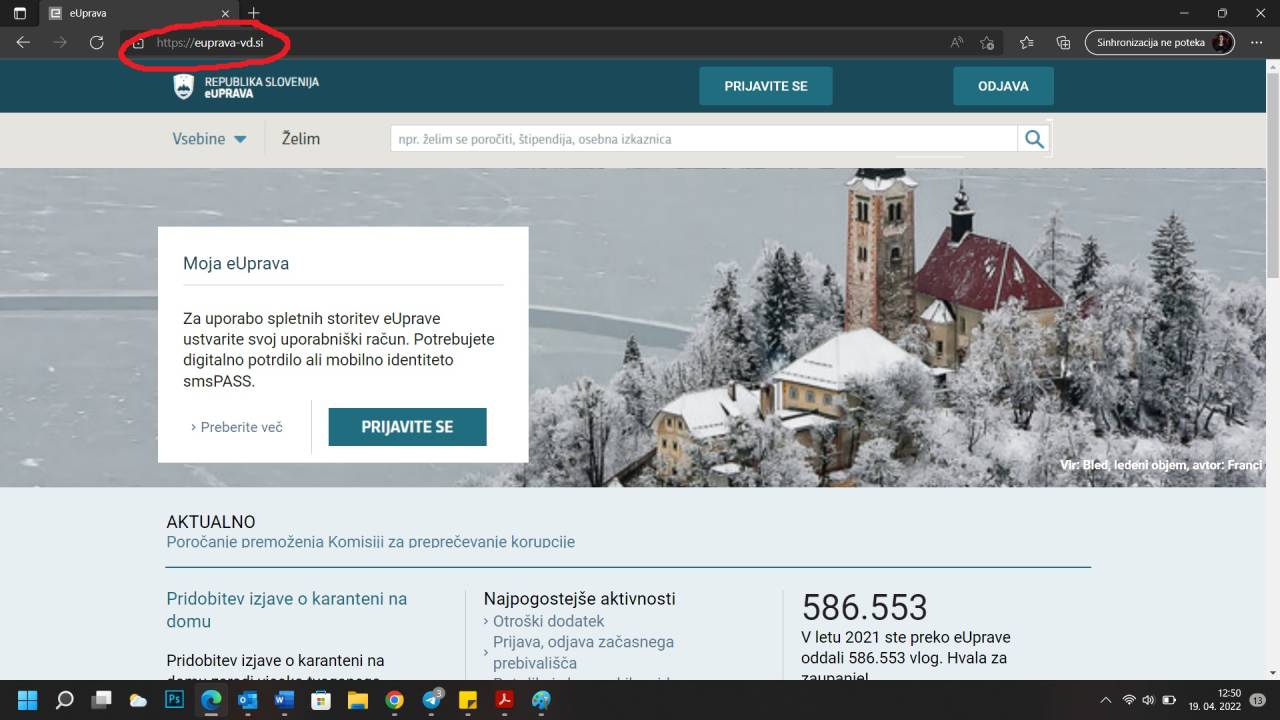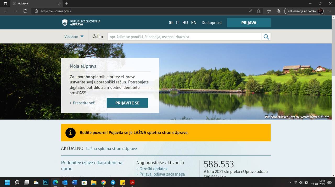 Strokovna ekipa direktorata za informatiko ministrstva za javno upravo je bila danes obveščena, da se je na spletu pojavila lažna spletna stran državnega portala eUprava, ki se nahaja na povezavi: https://euprava-vd.si/.