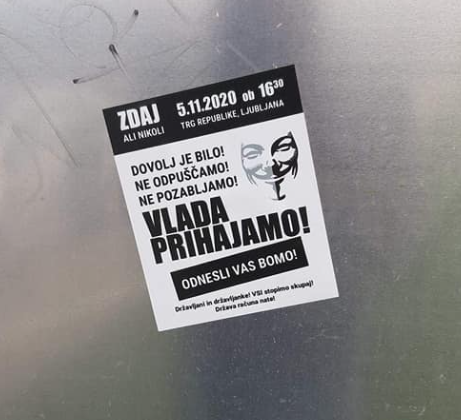 Na družbenih omrežjih, ponekod pa tudi z deljenjem letakov se poziva ljudi k zbiranju in protestiranju, ki naj bi se odvijali na območju centra Ljubljane pa tudi v drugih večjih krajih po Sloveniji, jutri, 5. novembra.