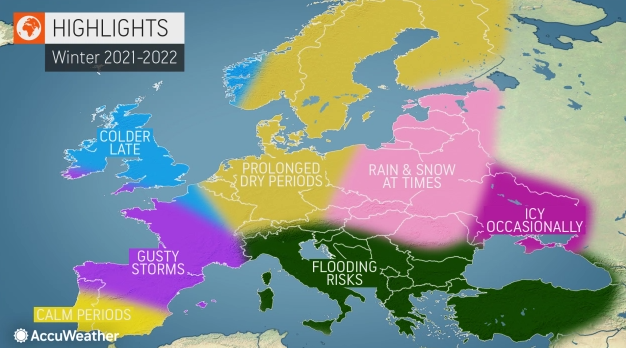 AccuWeather poudarja, da lahko vsaka nevihta, ki bo letos prizadela južna območja Evrope, prinese neugodne vremenske razmere tudi južni in vzhodni Evropi. Tako bi nas naj letos čakala razmočena zima.