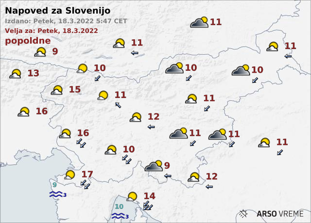 Najvišje dnevne temperature bodo od osem do 12, na Primorskem do 17 stopinj Celzija.