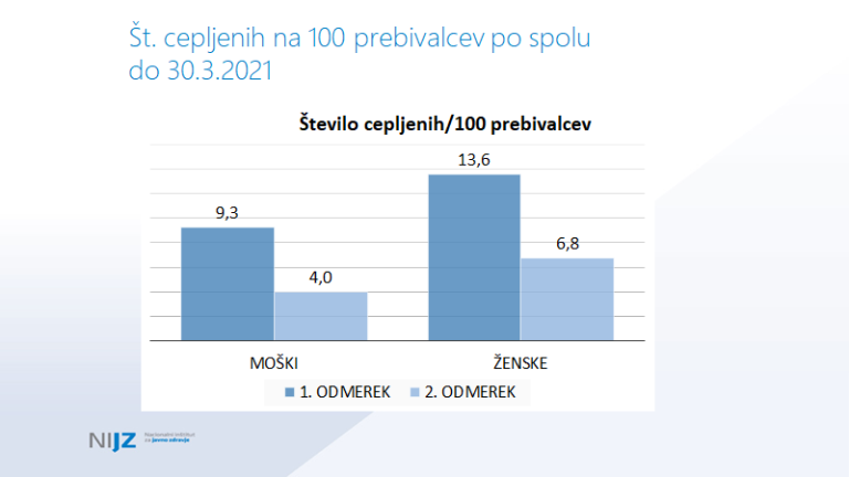 13,6 odstotka žensk je prejelo prvi odmerek cepiva, medtem ko je s prvim odmerkom cepljenih 9,3 odstotke moških.