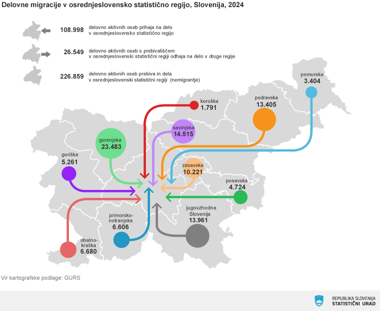 Ob koncu preteklega leta je približno 510.000 delovno aktivnih oseb dnevno odhajalo na delo v drugo občino. To pomeni, da je skoraj vsak drugi delovno aktiven prebivalec medobčinski delovni migrant.