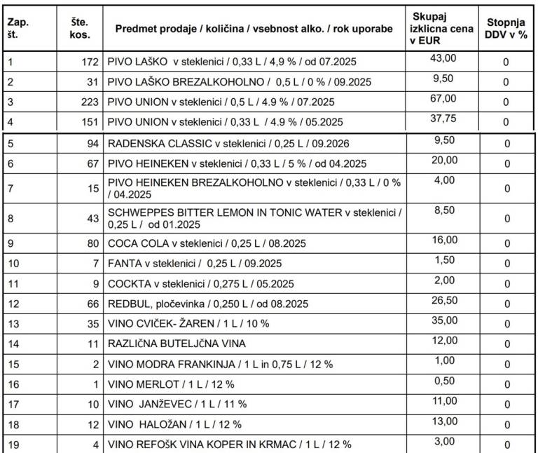 Finančna uprava na dražbi prodaja pijačo. Tudi alkoholno