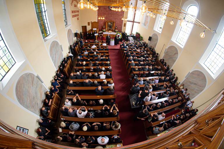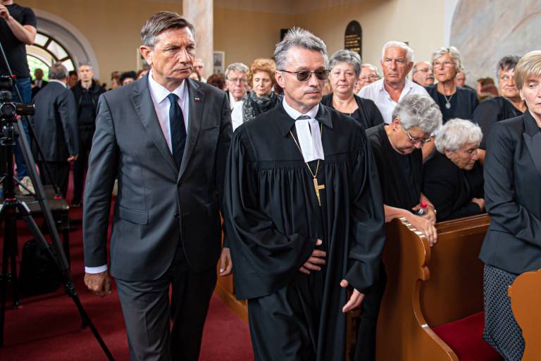 V evangeličanski cerkvi v Moravskih Toplicah je bila ob 12. uri pogrebna slovesnost, ob 13. uri je sledila še žalna slovesnost za pokojnega Gezo Ernišo.