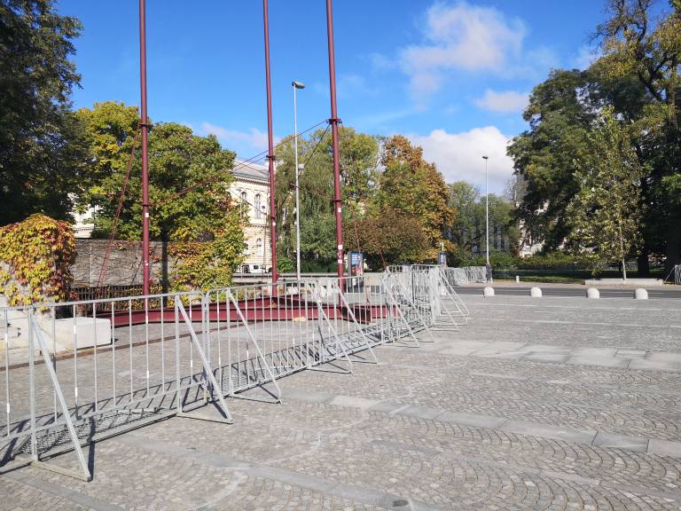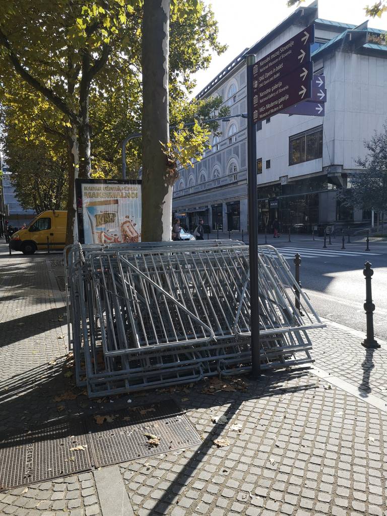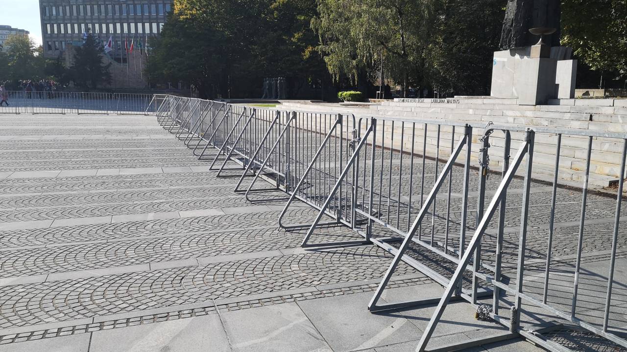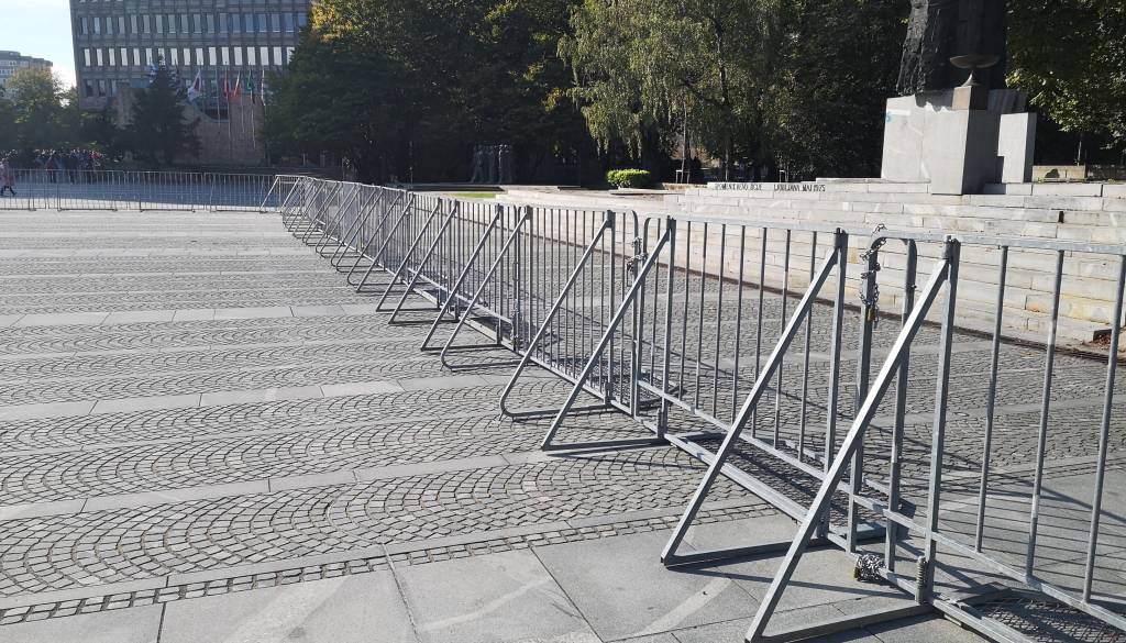 Protestniki bodo danes ob 15. uri spet zavzeli središče Ljubljane, na Trgu Republike pa so že postavljene zaščitne ograje.