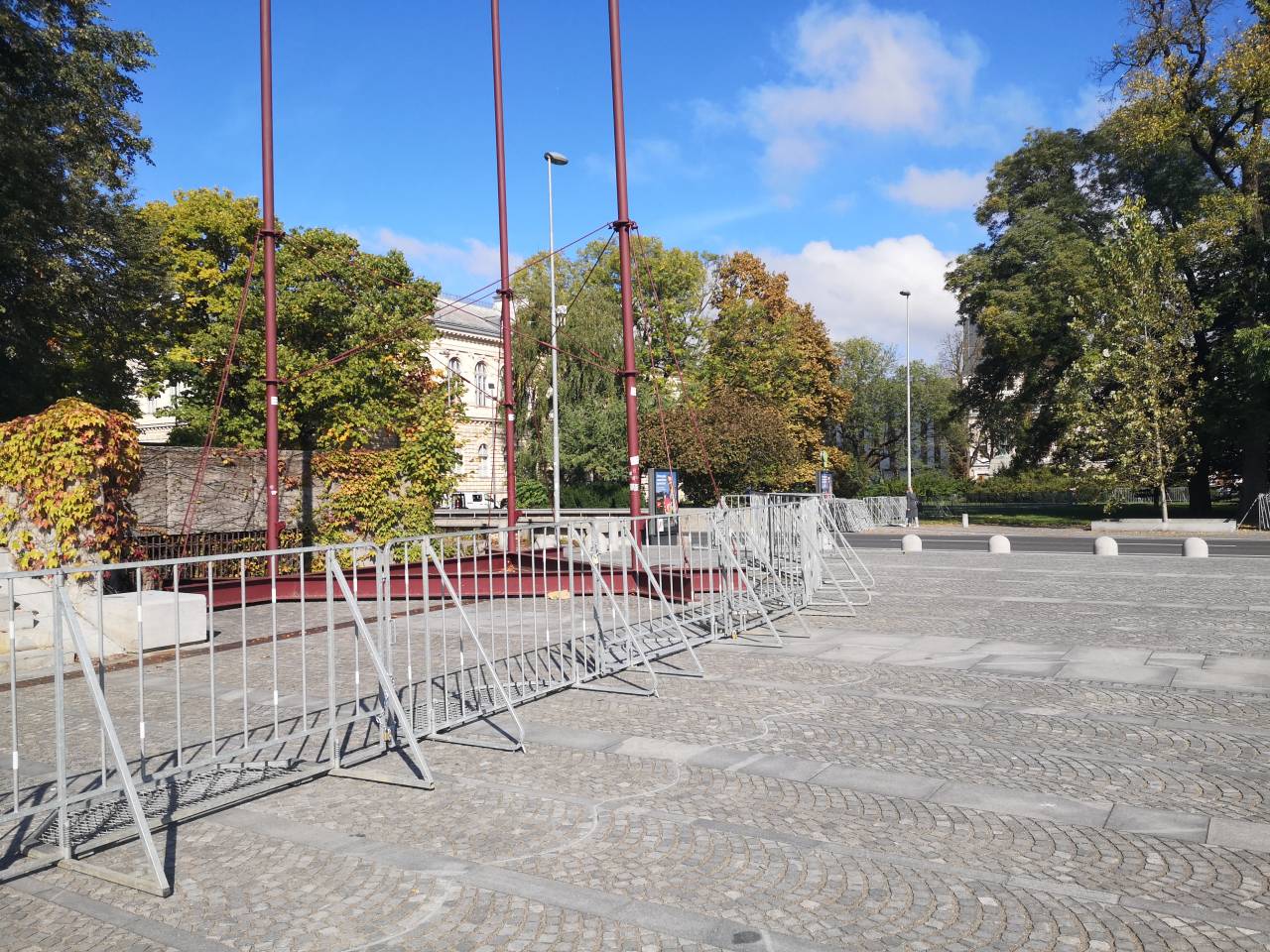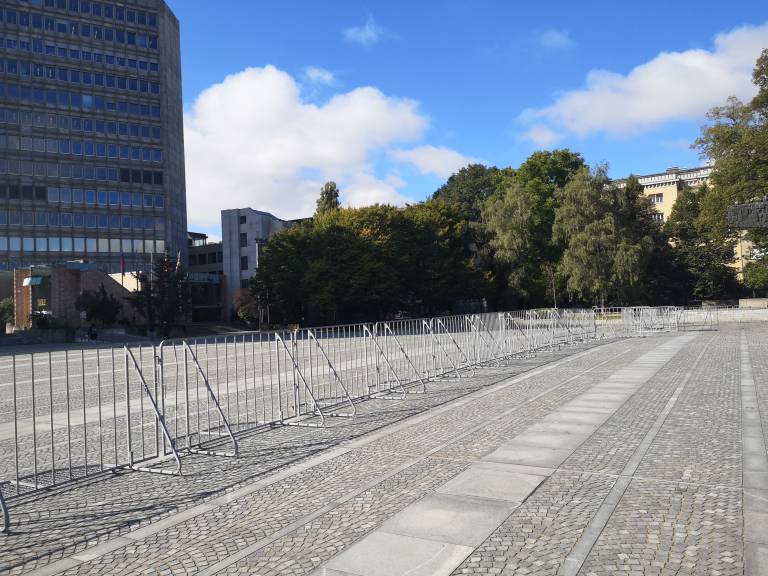Pred parlamentom so že postavljene zaščitne ograje.