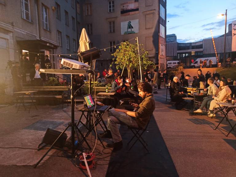 Dogajanje si lahko v živo ogledate tudi preko projekcije na fasadi Mladinskega.