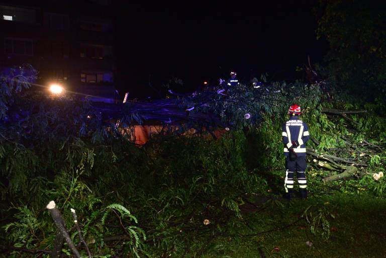 Neurje z močnim vetrom in obilnim dežjem, ki je v sredo v večernih in nočnih urah prešlo Slovenijo, je največ težav povzročilo na območju Ljubljane, Maribora in Slovenj Gradca.