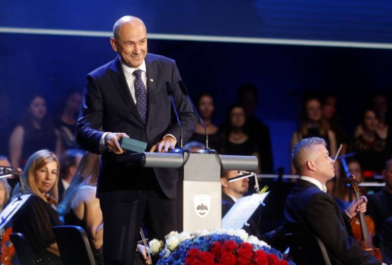 Premier Janez Janša je na proslavi ob dnevu državnosti od portugalskega zunanjega ministra Augusta Santosa Silve simbolično prevzel štafeto predsedovanja Svetu EU. Ob tem je posvaril pred uporabo dvojnih meril, zato se bodo borili za enake vatle za vse.