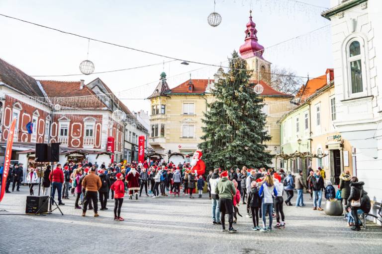 Rekreativci so se začeli zbirati med 13.00 in 13.50 na Mestnem trgu, obvezna oprema pa je bila božičkova kapa.