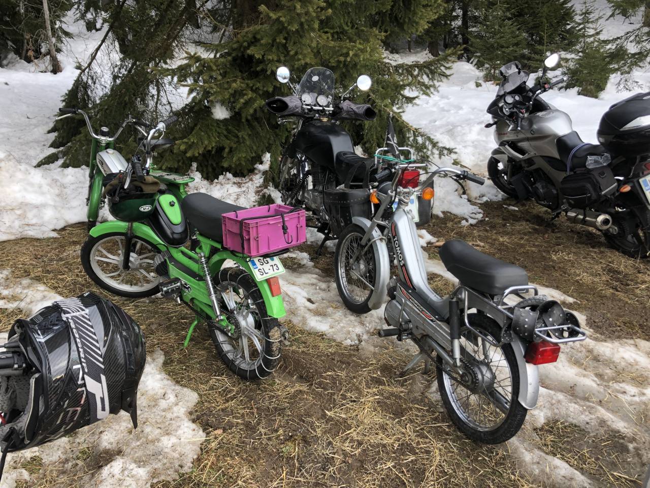 Tiste, ki jim ni uspelo prilezti do prizorišča z motorjem, so organizatorji prepeljali s terenskim vozilom in prikolico za prevoz motorjev.
