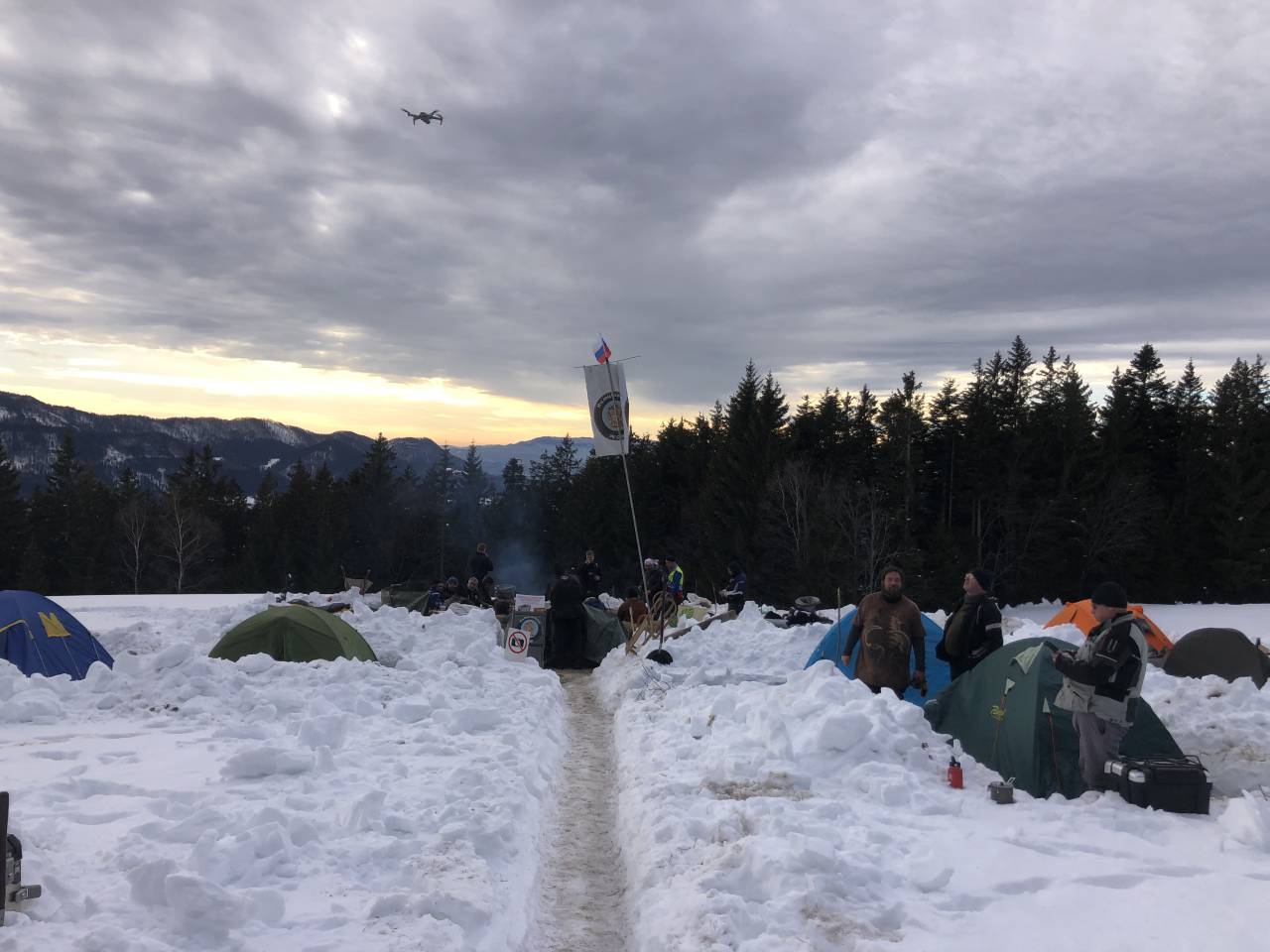 Udeleženci srečanja na prizorišču odstranijo sneg in zakurijo taborni ogenj, ob katerem se družijo in kuhajo. V bližini postavijo šotore, kjer prenočijo.