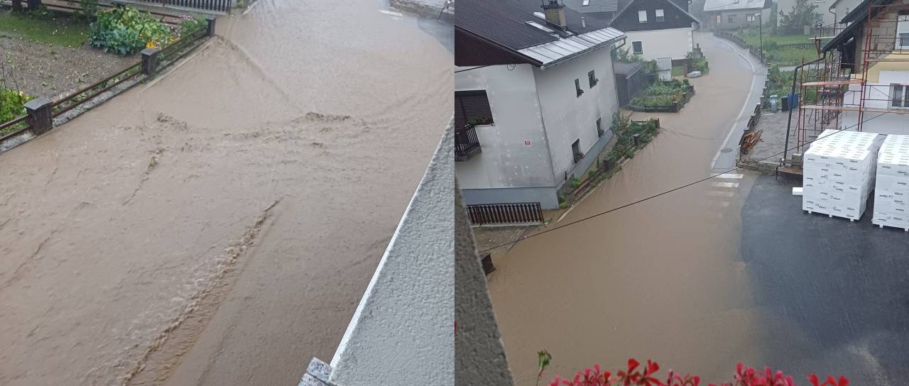 Tudi na območju Mestne občine Slovenj Gradec in Občine Mislinja so bile popoldne zaradi močnega deževja zalite številne kleti in dvorišča.