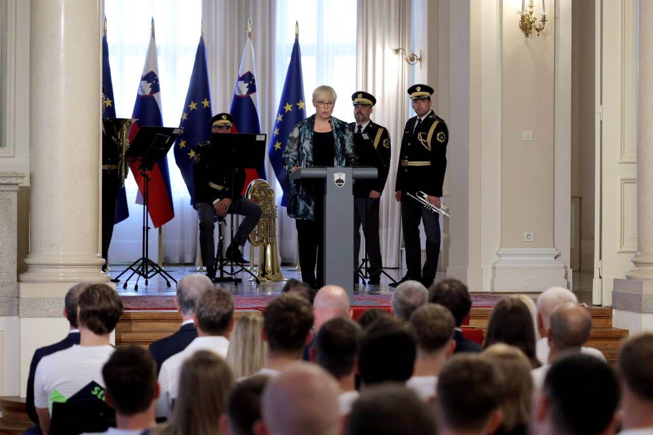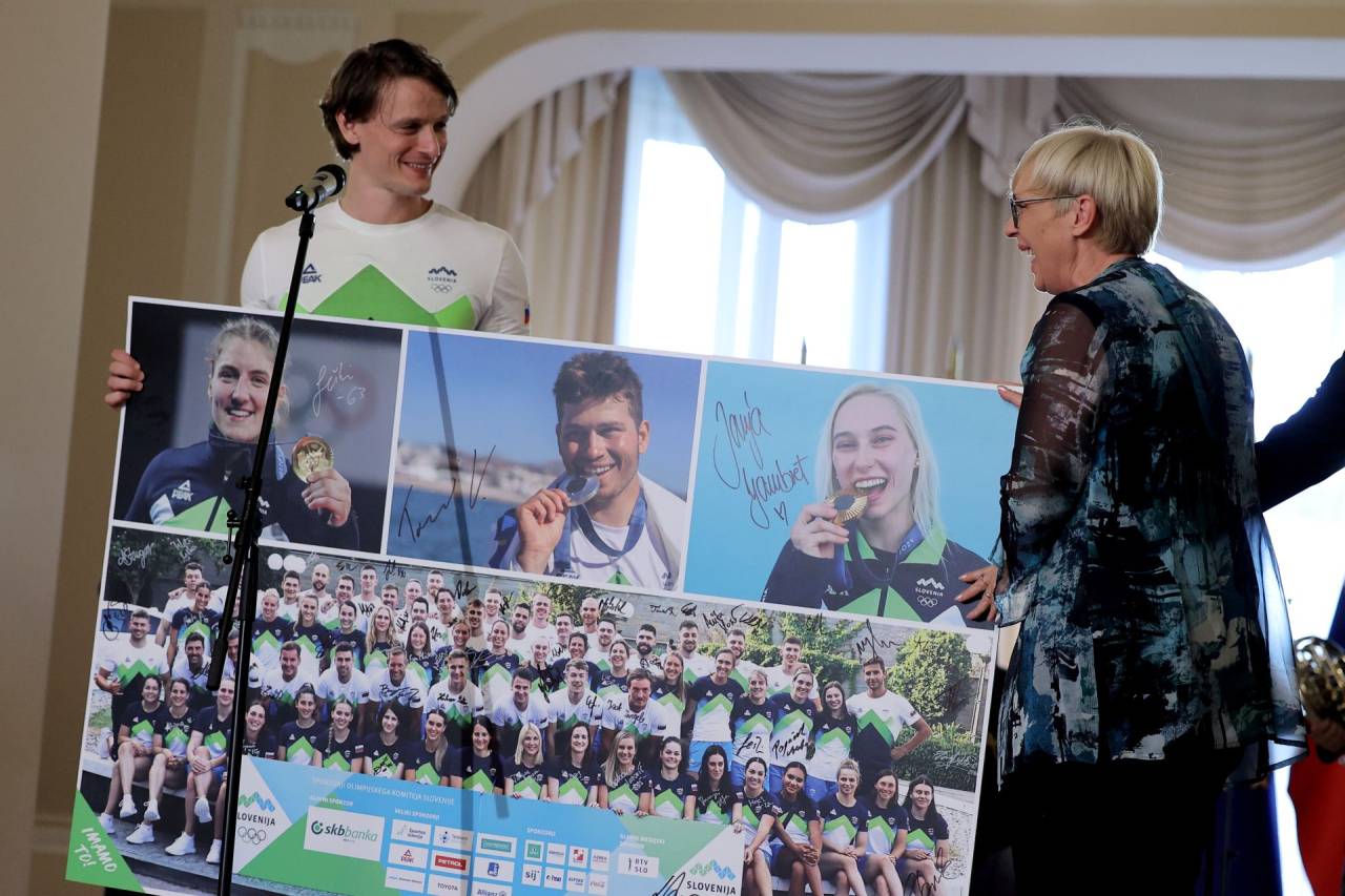 Pred sprejemom za slovenske olimpijce, ki ga je Olimpijski komite Slovenije za slovenske športnike, udeležence iger v Parizu, pripravil na Kongresnem trgu v Ljubljani, je športnike sprejela tudi predsednica republike Nataša Pirc Musar.