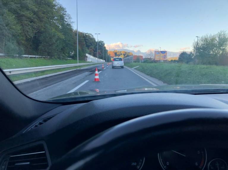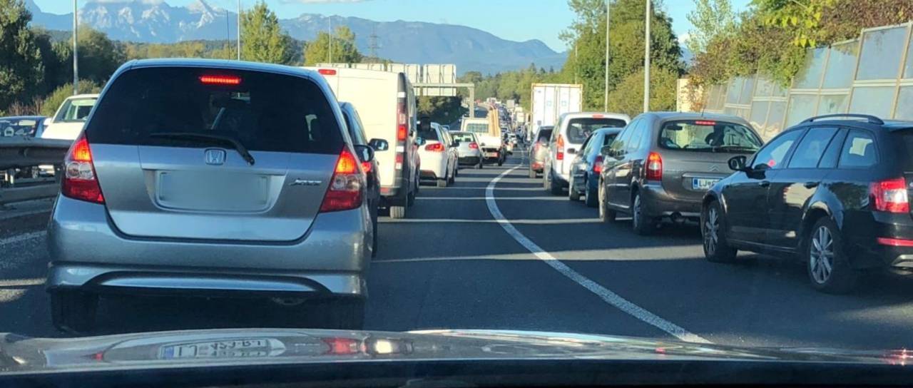 Promet proti Trzinu poteka le po enem voznem pasu.