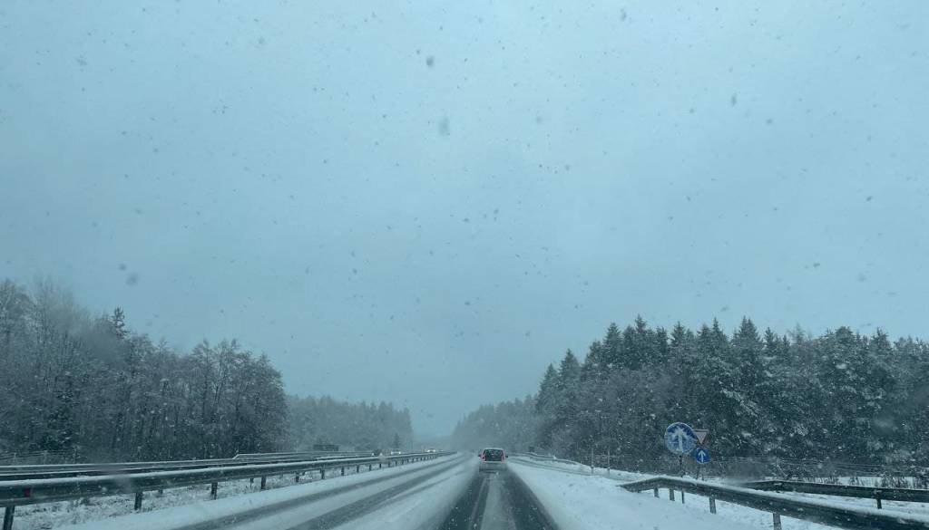 Dežne kaplje se tudi v Ljubljani že počasi spreminjajo v snežinke. Nekaj minut vožnje iz Ljubljane pa so na cestah že prave snežne razmere.