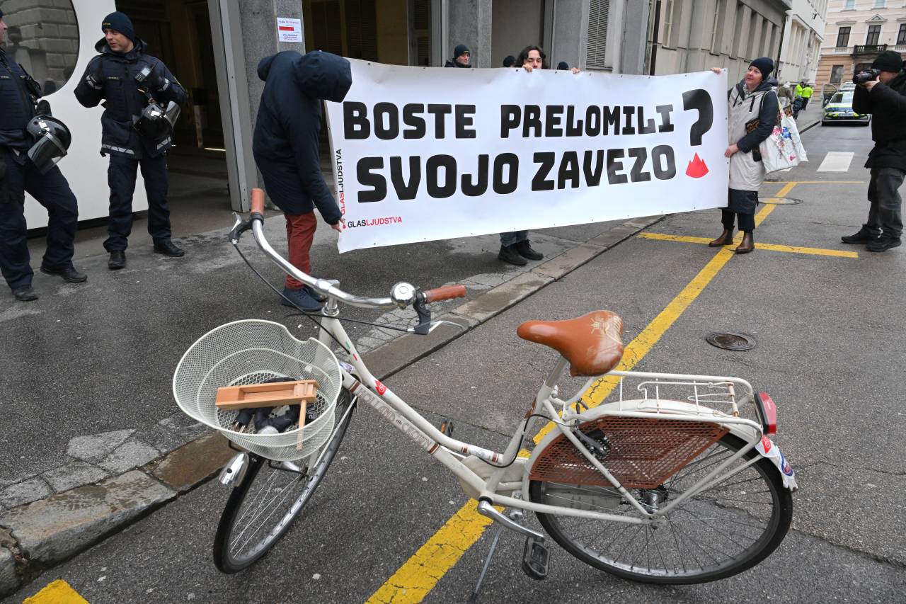 Protestno kolesarjenje pred poslopjem vlade na Gregorčičevi.