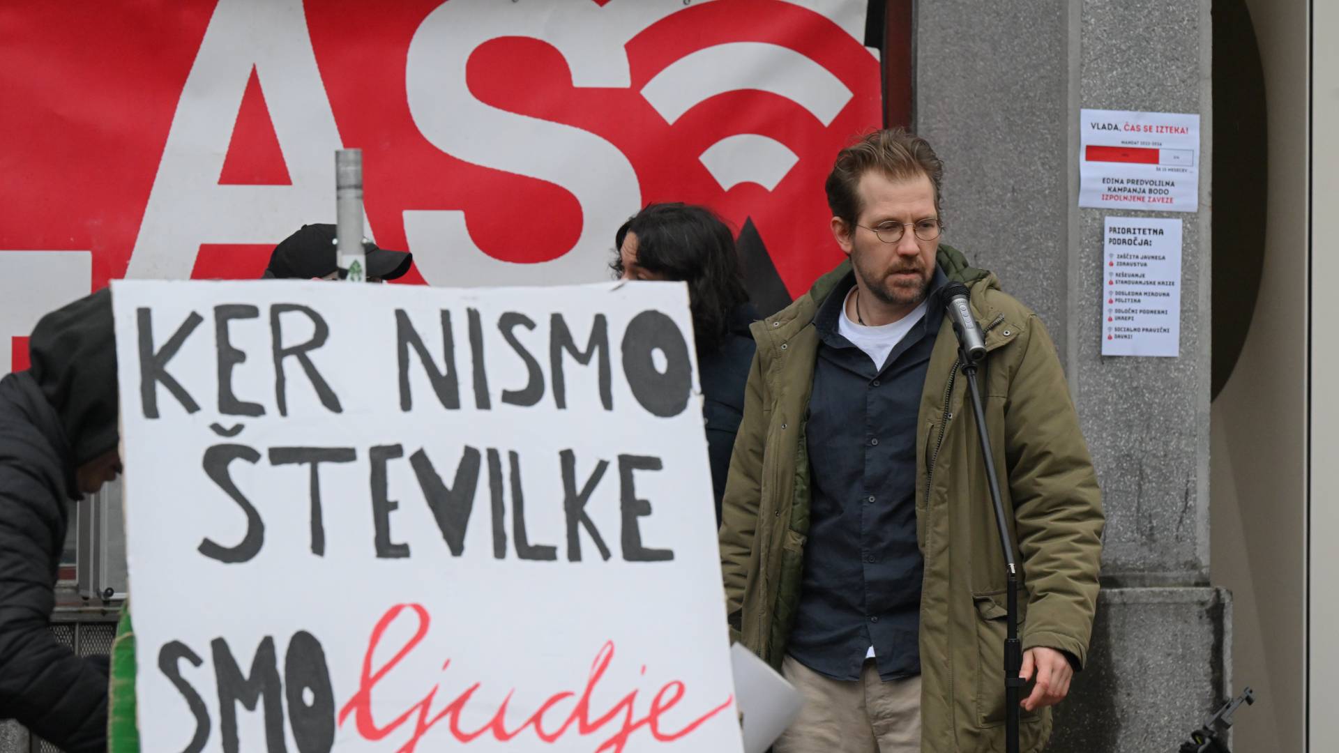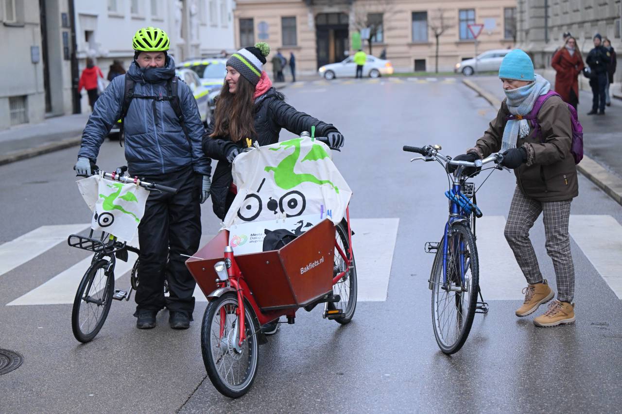Ob 17. uri so se peš in kolesi zbrali pred vladnim poslopjem v Gregorčičevi ulici v Ljubljani.
