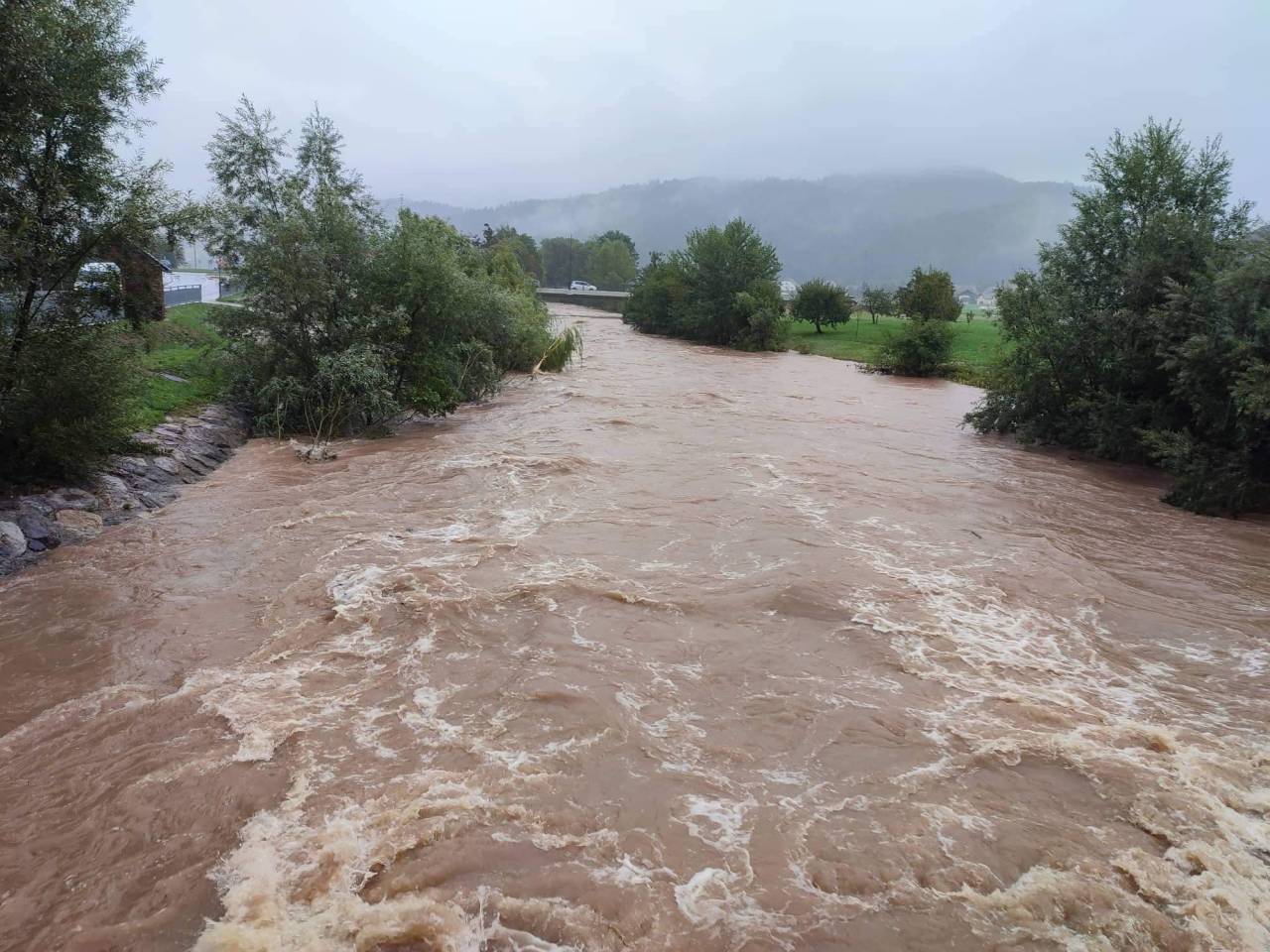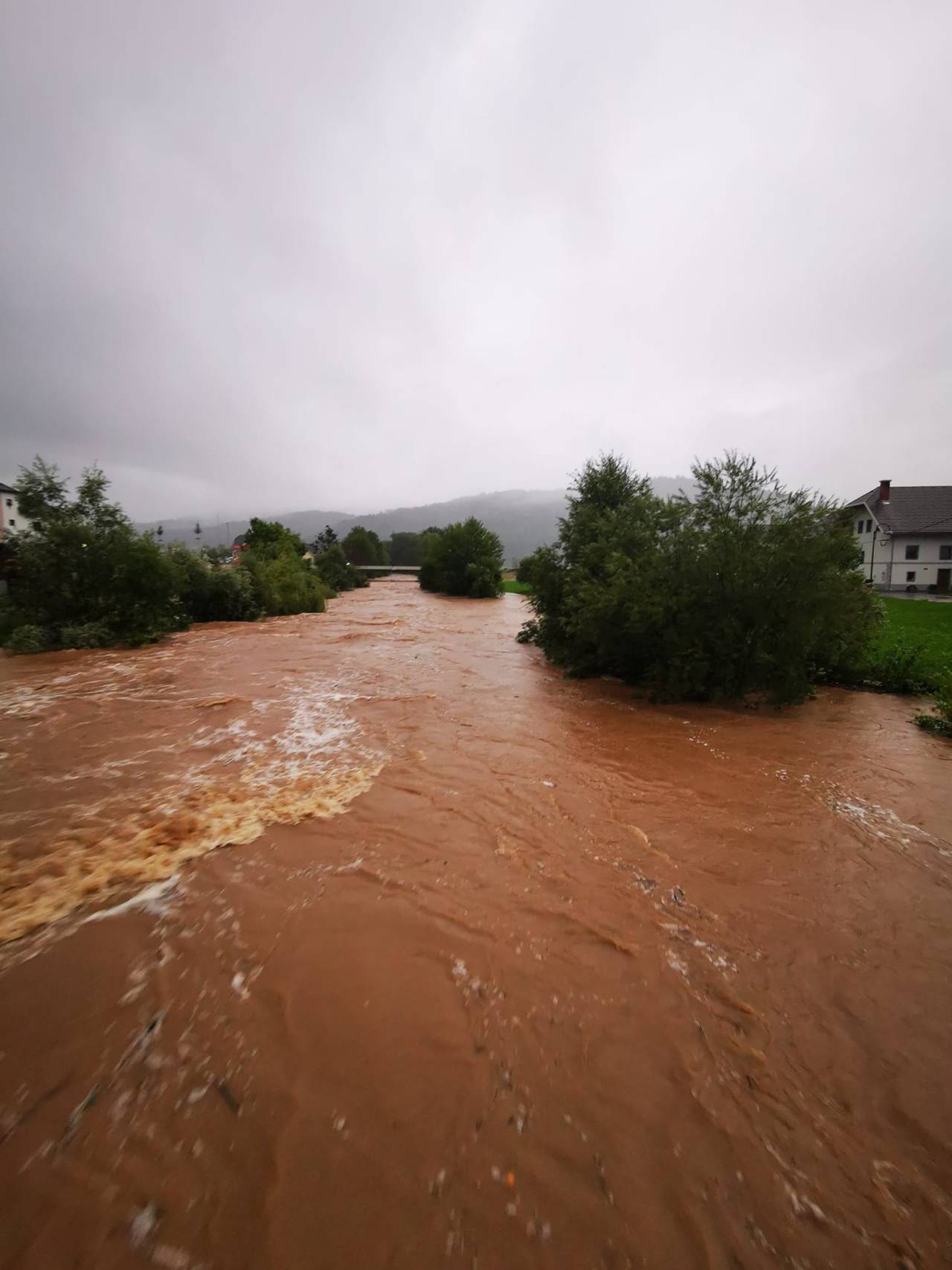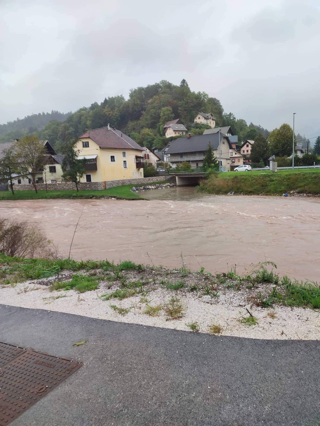 Čez bregove se je spustila reka Sora, voda je zajela Gorenjo vas, Ljubljanica pa se v blatni barvi približuje bregovom.