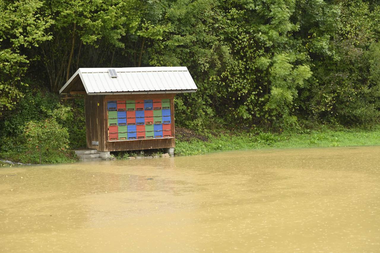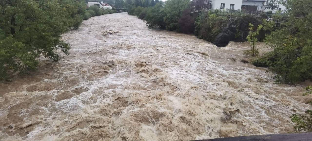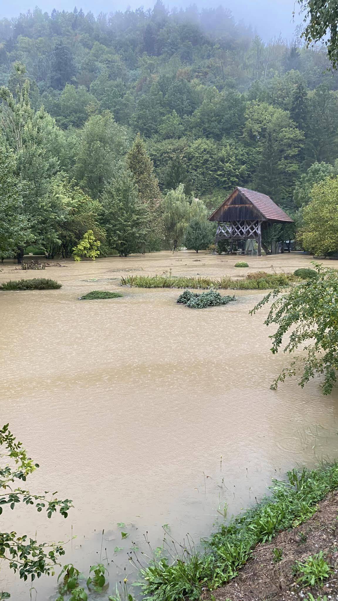 Čez bregove se je spustila reka Sora, voda je zajela Gorenjo vas, Ljubljanica pa se v blatni barvi približuje bregovom.