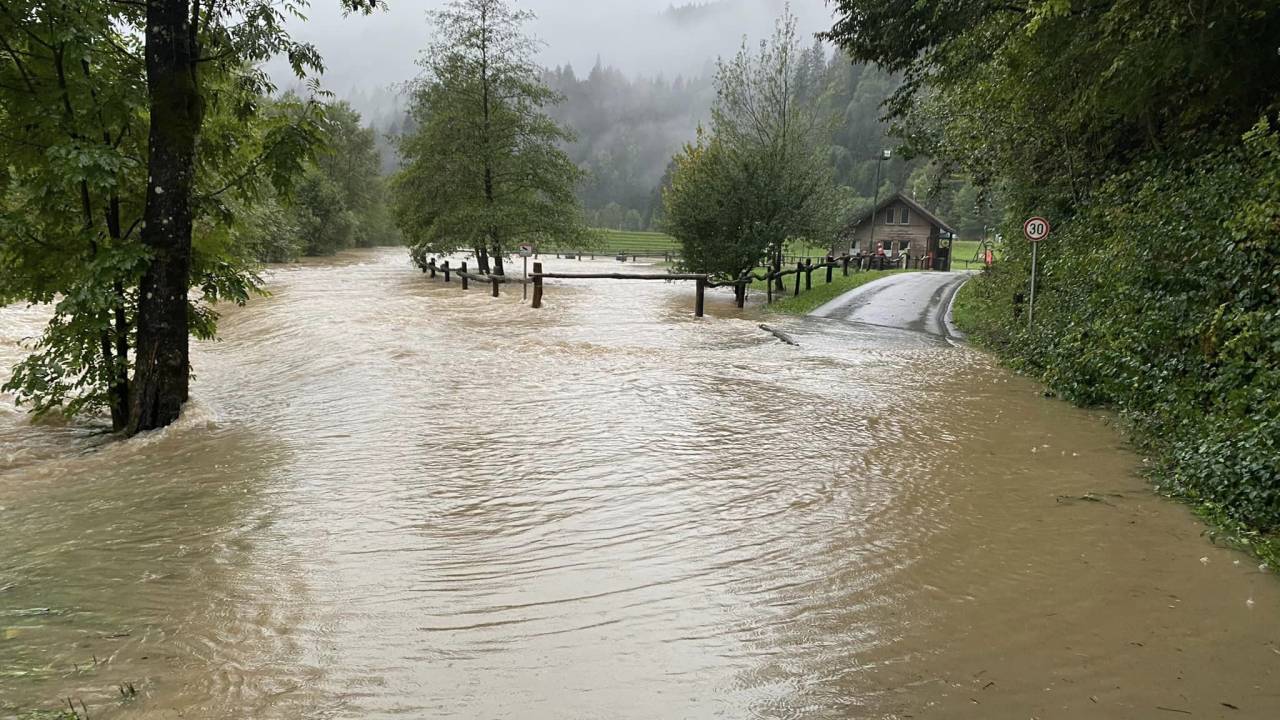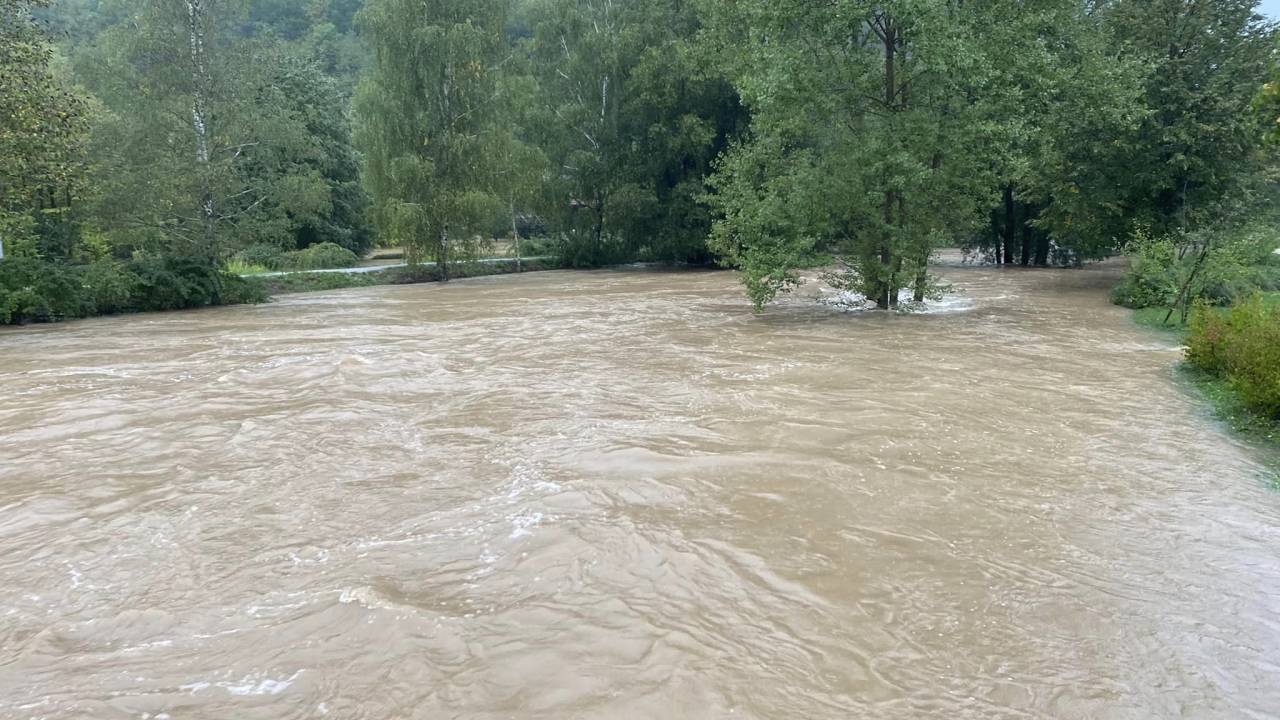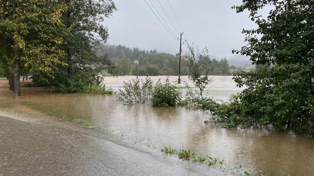 - Na cesti Logatec - Žiri je popolna zapora na Petkovcu, poplavljeno cestišče.