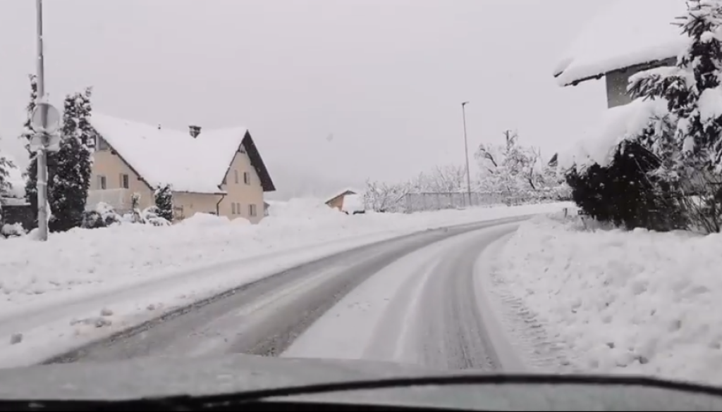 Na zahodnem delu Gorenjske je že včeraj močno snežilo. Po podatkih ARSA je snežna odeja v Ratečah debela dobrih 57 centimetrov, kar je največ po marcu 2018. Čez dan bo predvidoma zapadlo še okoli 10 centimetrov snega. Takole pa trenutno izgleda vožnja proti Kranjski Gori.
