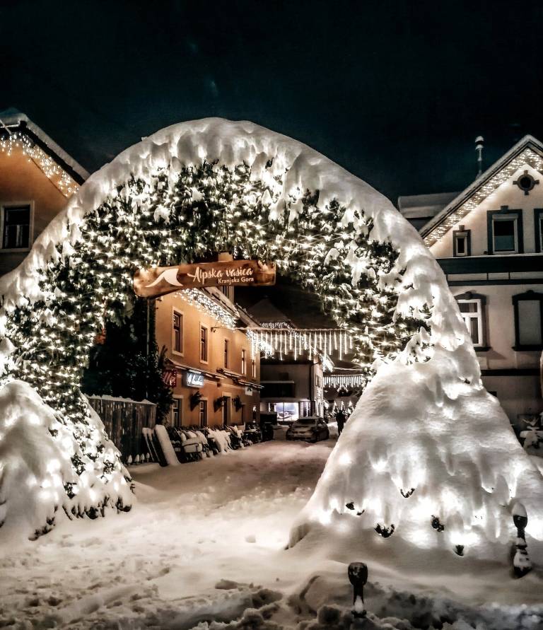 Večerni sprehod po Kranjski Gori pa izgleda takole. Prava zimska idila!