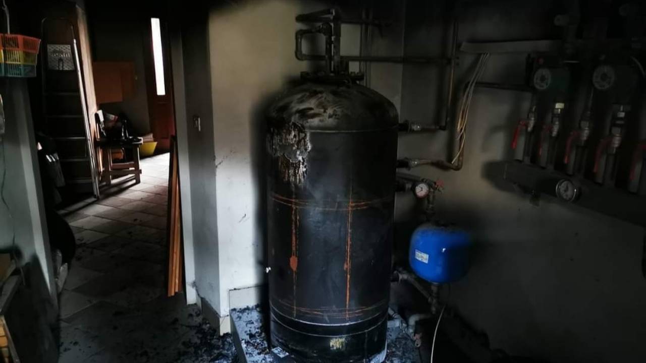 V kurilnici stanovanjskega objekta je zaradi napake v električni napeljavi zagorel starejši bojler.
