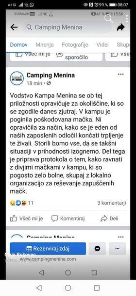 »Uslužbenec kampa in njegov zaenkrat še neidentificirani pomočnik, ki je še pred prihodom policistov izginil neznano kam, sta na izjemno krut način vsem na očeh pokončala mlado muco,« so zapisali na Facebook profilu Lajka, društvo za zaščito in pomoč živalim v stiski.