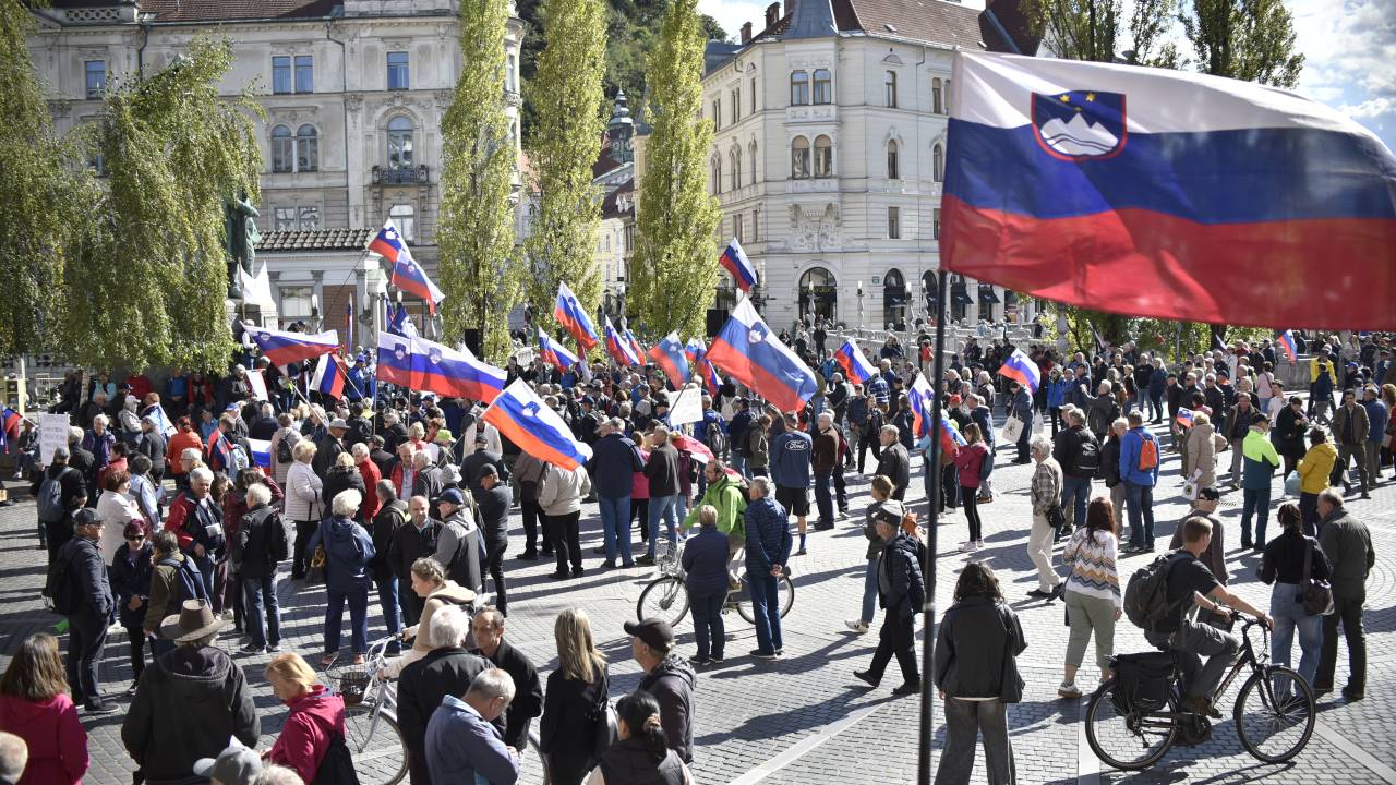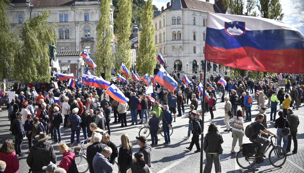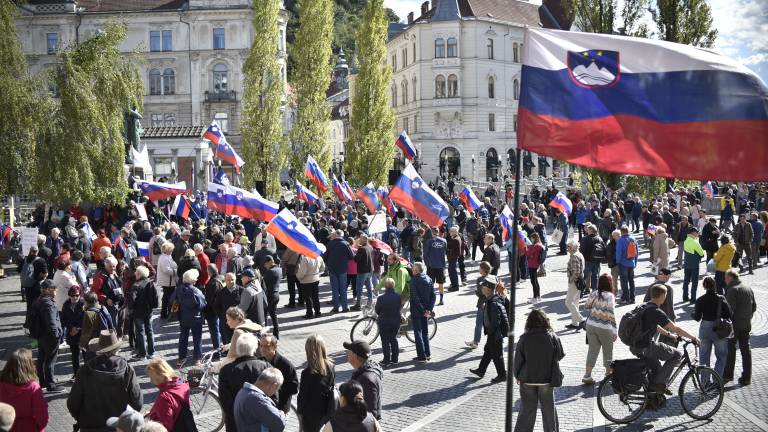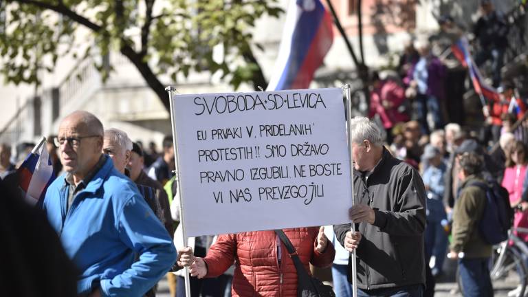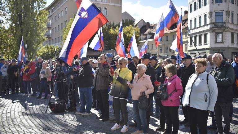 Na Prešernovem trgu se danes odvija protest proti vladi, ki ga organizirata Društvo Inštitut 1. oktober in stranka Glas upokojencev.