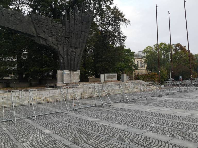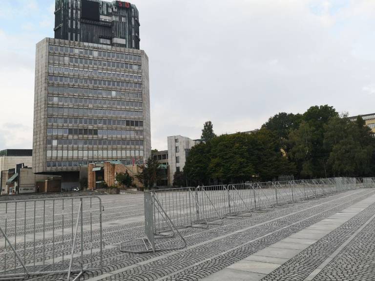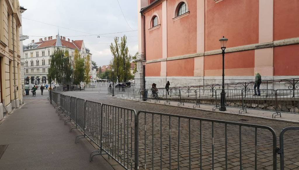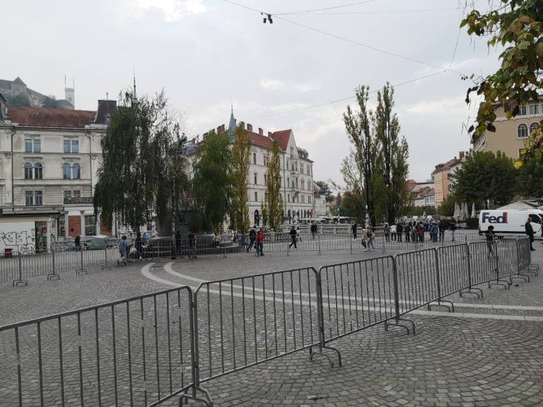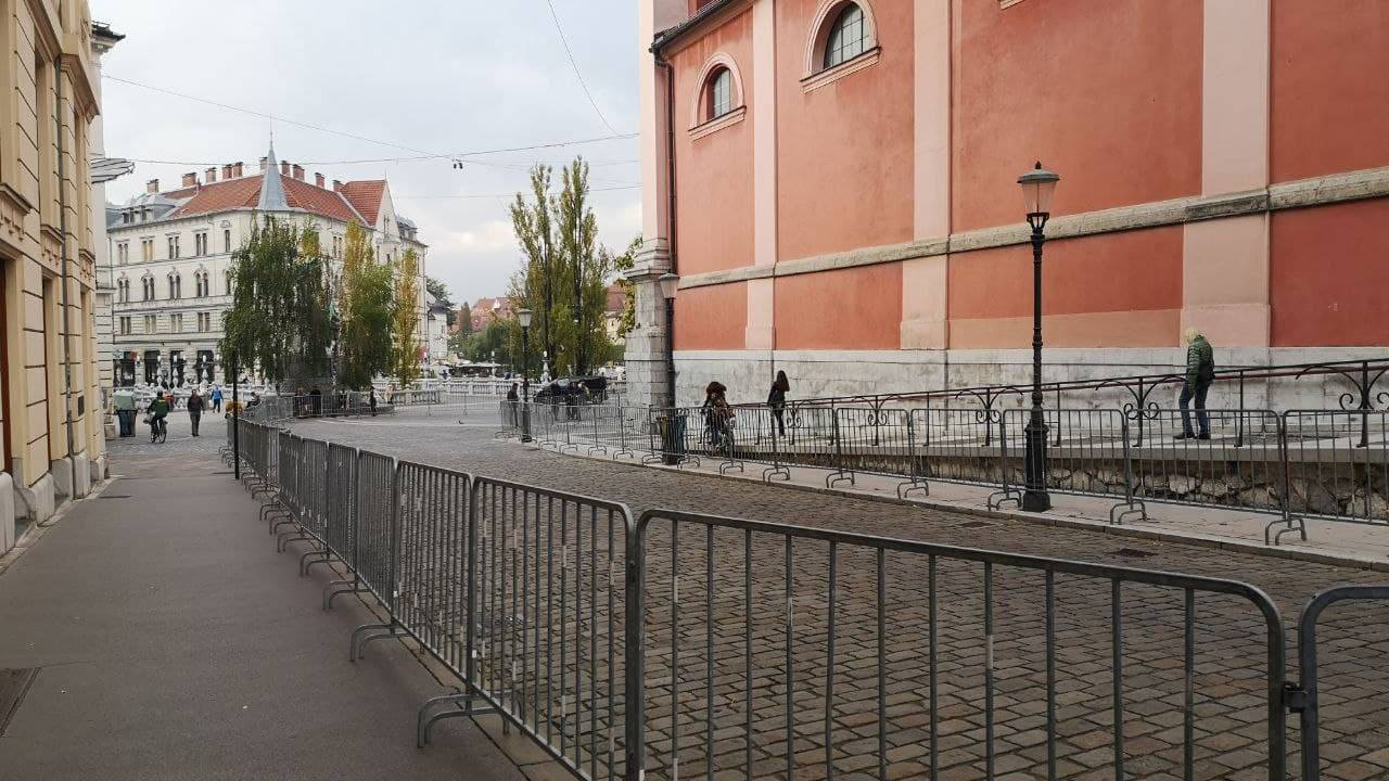 Protestniki bodo danes ob 15. uri zavzeli center Ljubljane, zjutraj pa so že bile na Prešernovem trgu in Trgu republike postavljene zaščitne ograje.