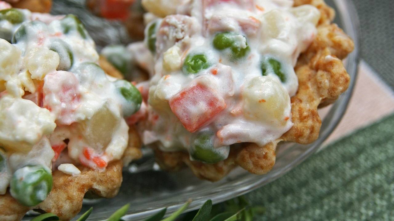Za novo leto si mnogi radi privoščijo bogato zelenjavno-majonezno solato po imenu francoska solata.