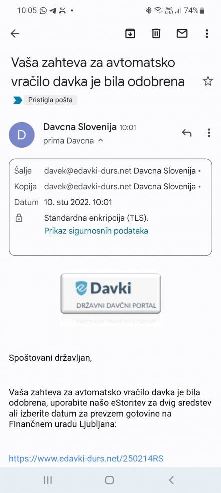 Poudarili so, da Finančna uprava Republike Slovenije od zavezancev nikoli ne zahteva, da vnašajo svoje osebne podatke ali podatke o transakcijskih računih v spletne povezave ali sms sporočila.