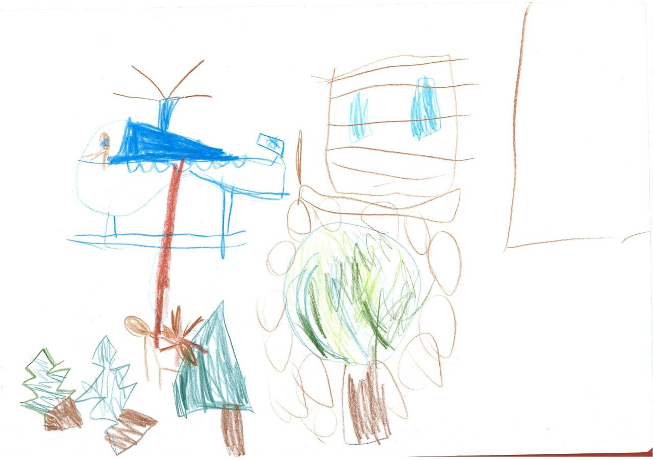 Deček, ki so ga prejšnji teden reševali z dežurno helikoptersko ekipo, je narisal svoje spomine na dogodek.