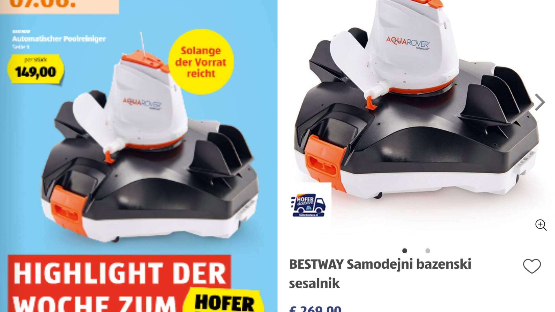 Uporabnik družbenega omrežja TikTok je v videu opozoril na veliko razliko v ceni samodejnega bazenskega sesalnika. Ta v Sloveniji stane 269 evrov, medtem ko je v letaku za avstrijsko tržišče cena enakega sesalnika le 149 evrov.