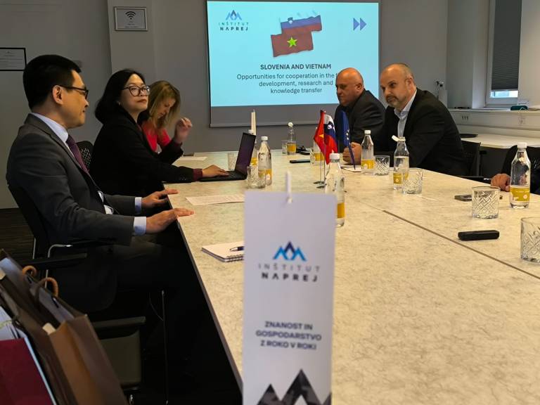 24. aprila 2025 je Inštitut NAPREJ v Ljubljani gostil pomemben dogodek, namenjen poglabljanju sodelovanja med Slovenijo in Vietnamom na področjih trgovine, razvojnih projektov, raziskav in prenosa znanja. Na srečanju so bili predstavniki znanosti, gospodarstva, športa, kulture in države, vključno z VŨ Lê Thái Hoàng, novoimenovanim vietnamskim veleposlanikom v Sloveniji, državnim sekretarjem Juretom Gašparičem z Ministrstva za visoko šolstvo, znanost in inovacije in Miho Ermanom z ministrstva za zunanje zadeve.