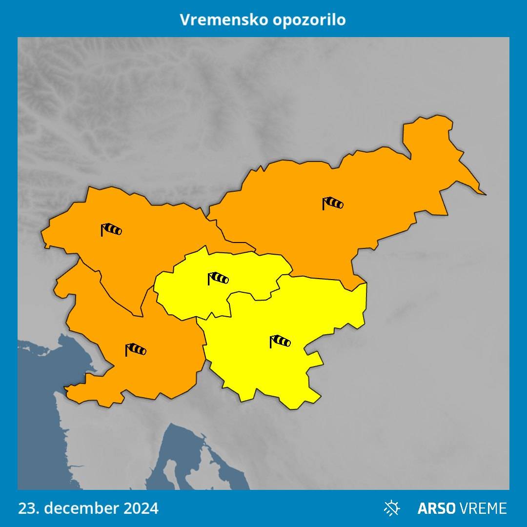 Najvišje hitrosti severnega vetra pričakujemo jutri čez dan, zato so vremenoslovci za obe severni regiji izdali oranžno opozorilo.