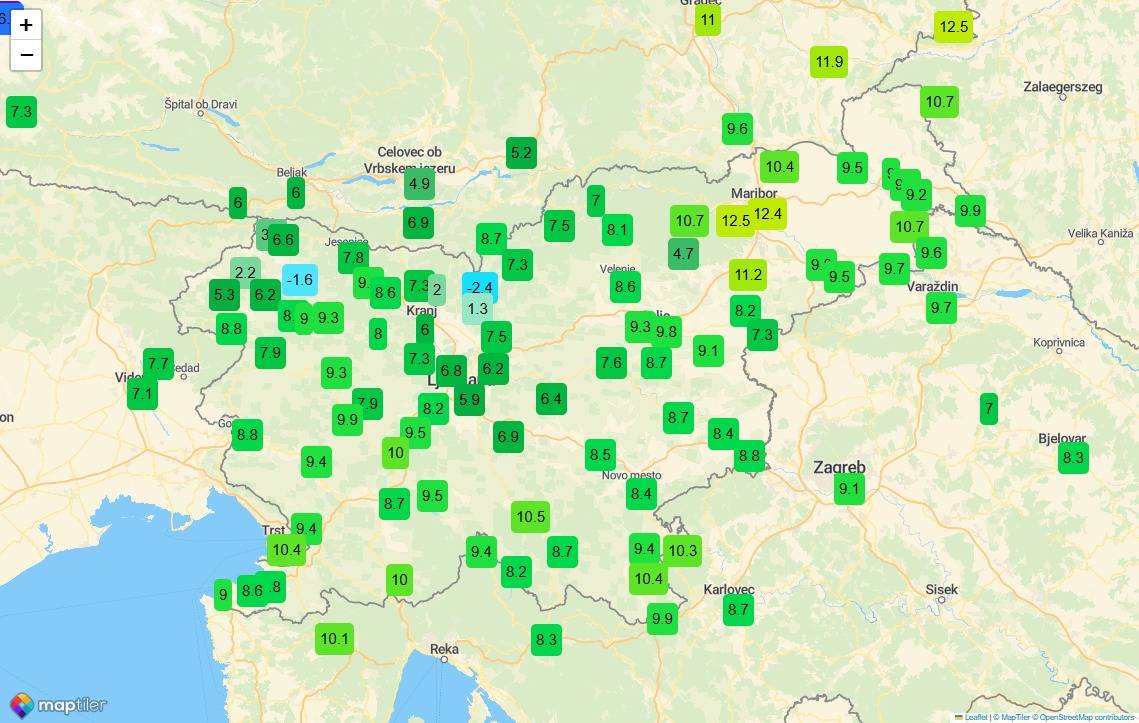 V okolici Maribora in Jeruzalema so izmerili temperature nad 13 stopinj Celzija.