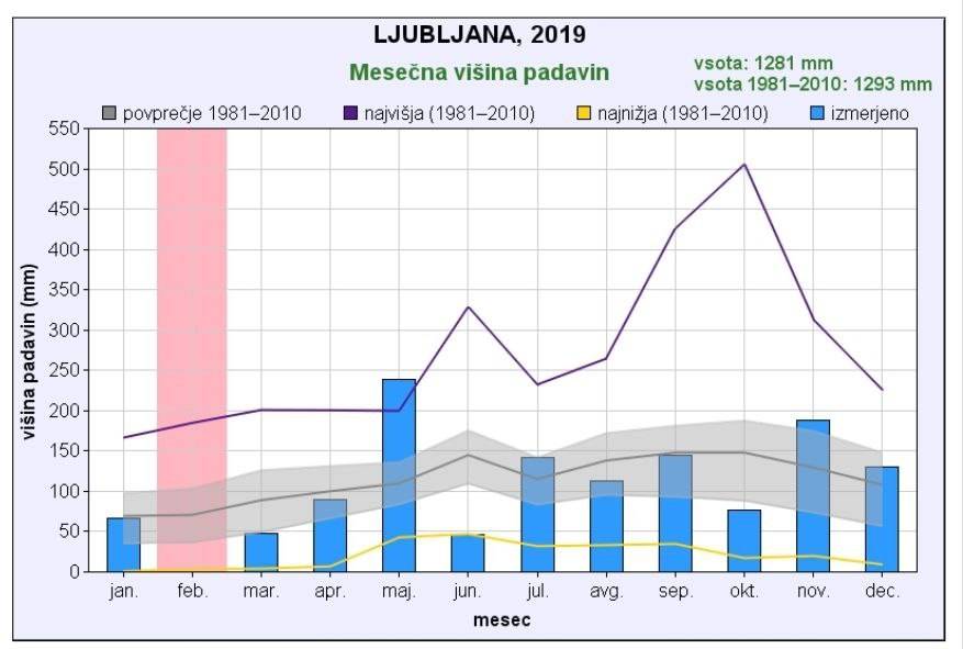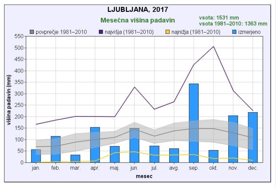 Na grafih lahko opazimo, da se je načeloma po letu 2017 obrnil trend poletnih padavin, kjer je v preteklih letih julij vselej veliko bolj deževen od junija.