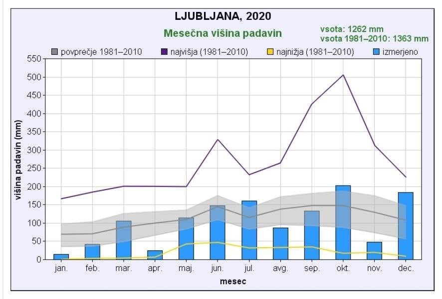 Kot je razvidno iz primerjave med lanskim in letošnjim letom, smo imeli lani v celem juliju v skupnem seštevku kar polovico manj padavin kot pa letos.