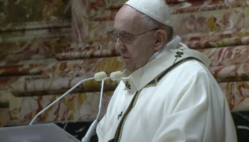 Zaradi protikoronskih ukrepov so v Vatikanu preložili tudi polnočnico, ki se je v četrtek začela ob 19.30, da so verniki lahko pravočasno prispeli domov še pred začetkom policijske ure ob 22. uri. Polnočnica je potekala potekala ob le skromni navzočnosti vernikov.