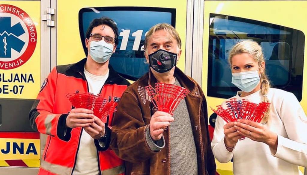Wuhobrane je zdravstvenim delavcem v UKC Ljubljana dostavil Jonas Žnidaršič, ki sodeluje pri projektu.