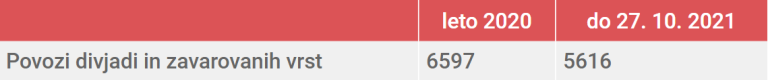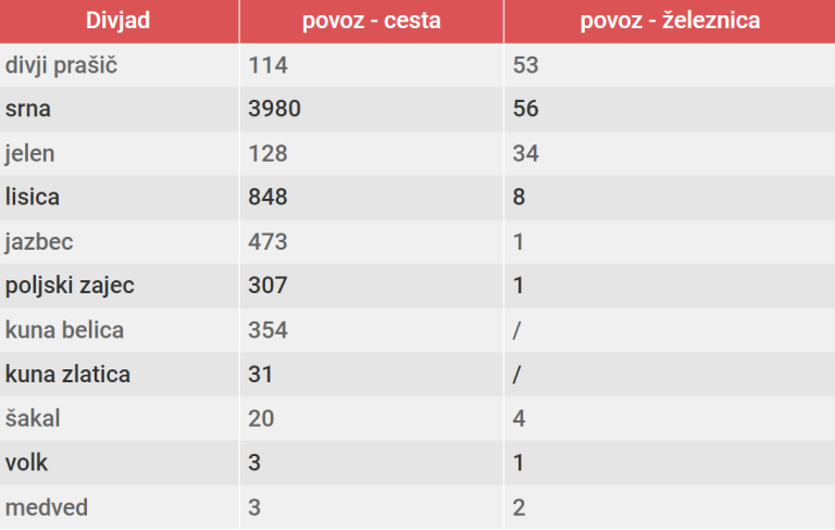Po podatkih iz Lovskega informacijskega sistema Lisjak je bilo v letošnjem letu na cesti povoženih že 5616 prostoživečih živali, na železnici pa 177.