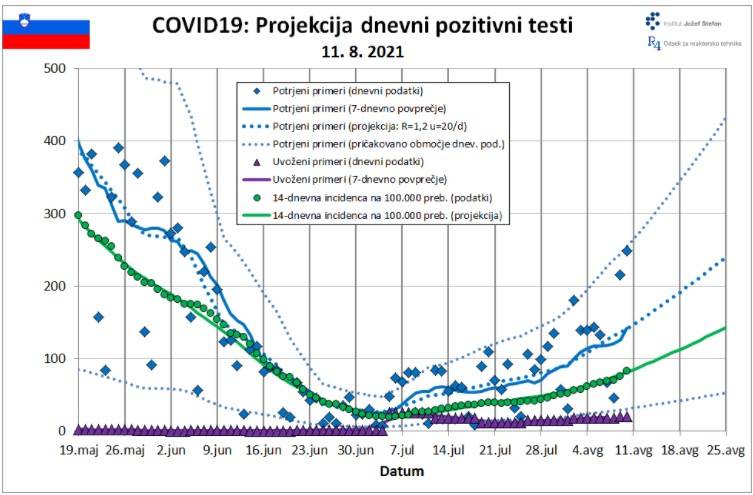 Institut Jožef Stefan opozarja, da epidemija narašča s podvojitvenim časom približno 20 dni, čeprav smo na vrhuncu počitniške sezone, kar deluje kot delno zaprtje države.
