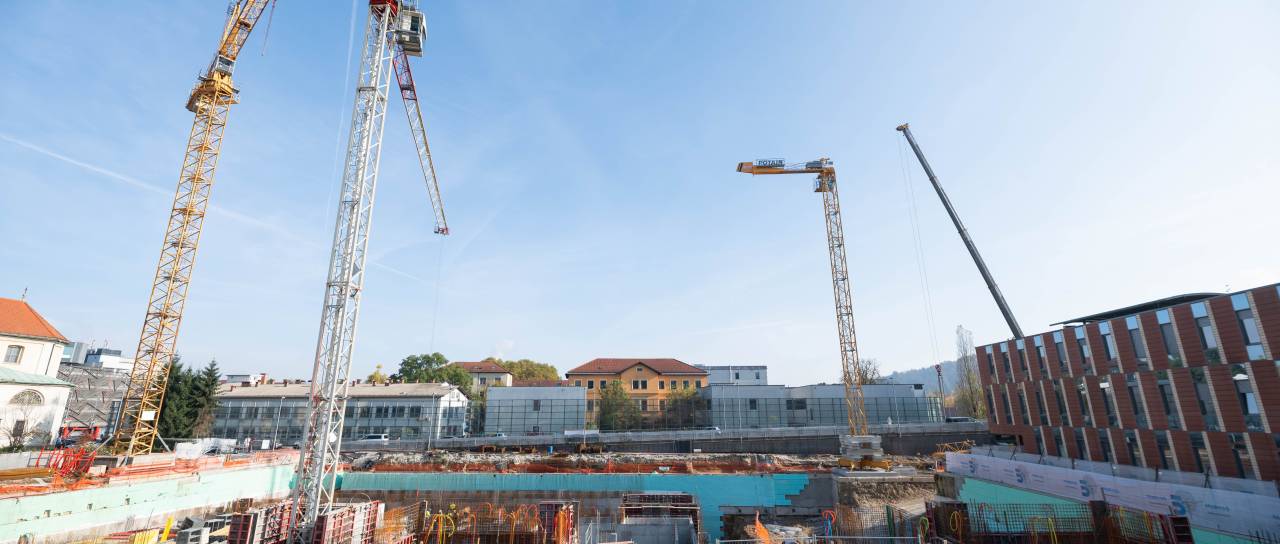 »Gradnja Kampusa Vrazov trg se je začela marca letos z obsežnimi zemeljskimi deli. Sočasno z izkopom smo po obodu gradbene jame izvedli varovanje z jet grouting piloti ter vgradili geotehnična sidra, ki še dodatno ojačajo obod gradbene jame.