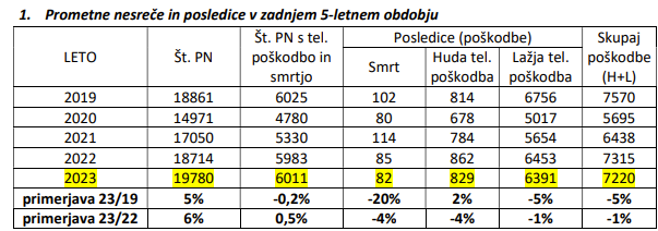 V letu 2023 več prometnih nesreč kot v letu 2022