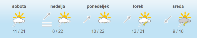 Popoldne bo delno jasno, predvsem v hribovitem svetu lahko nastane kakšna manjša ploha. Najvišje dnevne temperature bodo od 16 do 22 stopinj Celzija.
