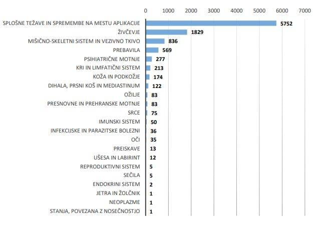 Nacionalni inštitut za javno zdravje je objavil podatke o prijavah neželenih učinkov po cepljenju proti covidu-19 za obdobje med 27. decembrom 2020 in 26. septembrom 2021.