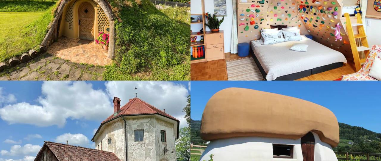 Na portalu najdemo vse mogoče – od nočitve v pasji hišici, predelanem vagonu za ovce, trupu starega letala, do nočitve v lesenem slonu, hišici v obliki krompirja in celem kupu hišic na drevesu.