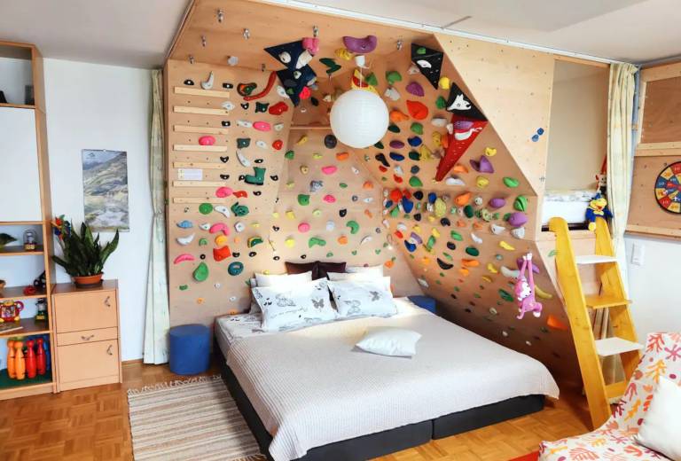 V mirni večstanovanjski soseski na obrobju Rač v bližini avtocestnega križa in letališča Maribor, se nahaja zanimiv apartma, z katerega je treba odšteti 47 evrov na noč. Pisana plezalna stena in ostala športna oprema bodo popestrijo čas, ki ga gostje preživijo v apartmaju. Otroci in otroci po srcu si lahko krajšajo čas z igračami in igrami, ki so »skrite« v omarah.